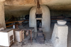 A 19. században ezek az üregek még nem emlékek voltak, hanem otthonok. A helyiek a könnyen faragható riolittufába vájták bele életüket – nem különlegességet kerestek, hanem megoldást. A tufába vájt lakások menedéket adtak: nyáron hűvösek voltak, télen megtartották a meleget. A természet és az ember itt különös egyensúlyra talált.